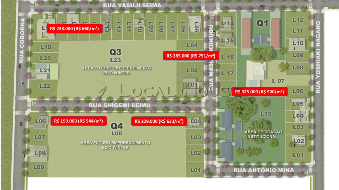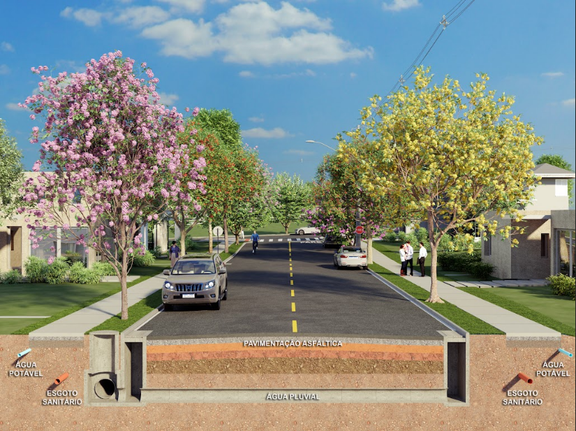 Um super loteamento e uma excelente estrutura para os futuros investidores, com redes de água e esgoto, rede elétrica e de iluminação, drenagem pluvial, projeto paisagístico, vias asfaltadas e arborizadas.